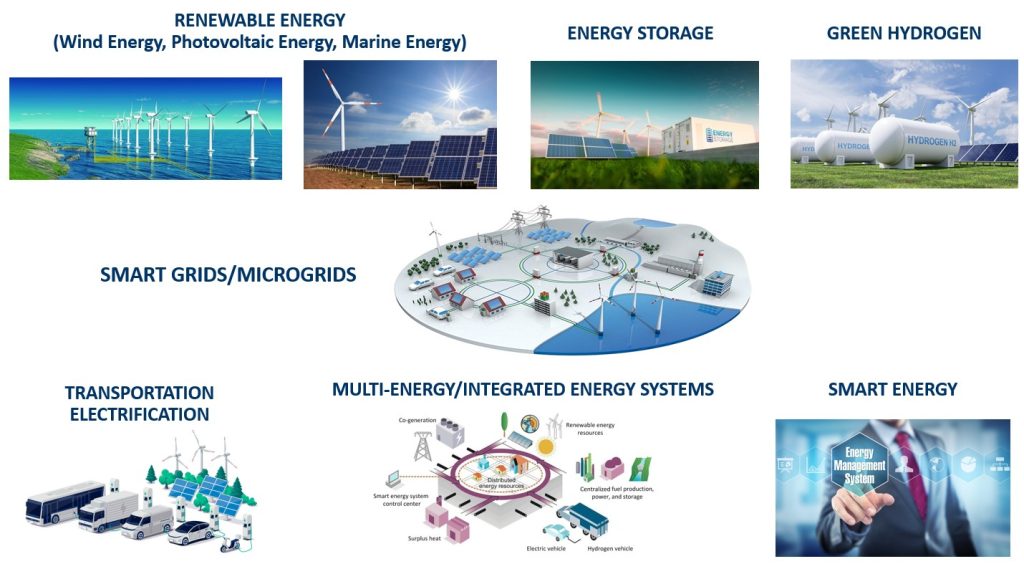 - MULTI-ENERGY/INTEGRATED ENERGY SYSTEMS: Diseño, control y operación de sistemas multi-energía/integrados de energía para producción integrada de electricidad, hidrógeno, energía para el transporte, calor/frío, etc.